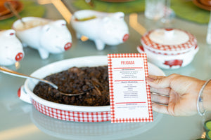A coleção conta com uma terrina em cerâmica, com detalhes em alto relevo pintados à mão. As peças são feitas de cerâmica faiança, 100% artesanal de fabricação nacional.